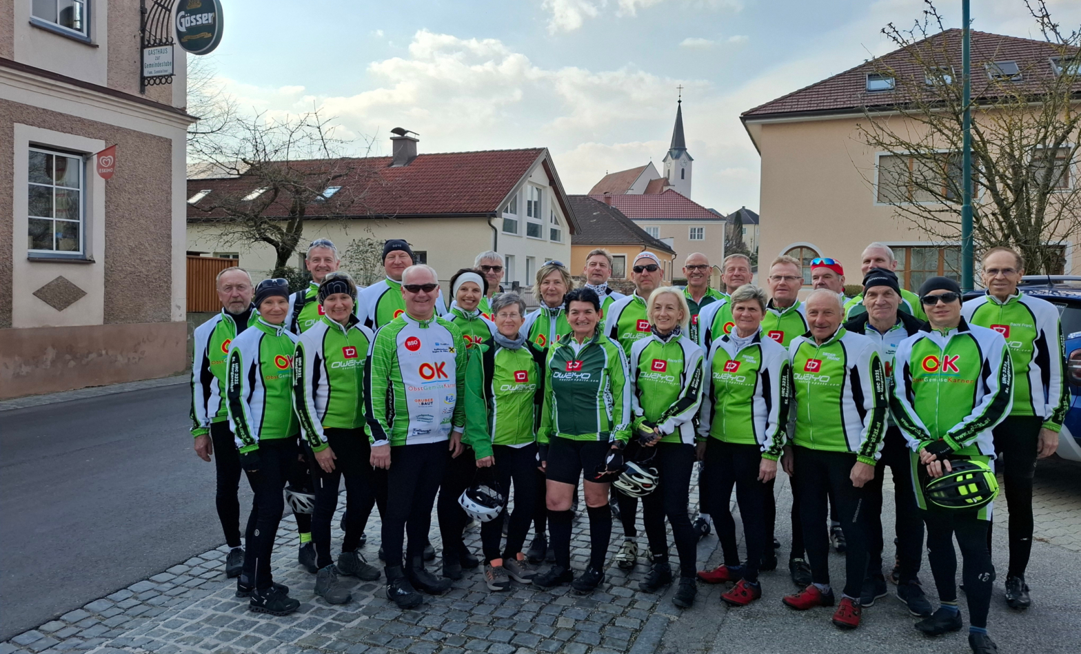 Sportradler, Genussradler und Fitnessradler – in Summe 24 Radler – trafen sich um 15:00 Uhr vor dem Gemeindeamt St. Margarethen. Nach einem gemeinsamen Foto mit dem Sponsor Raiffeisenbank Obergrafendorf starteten die Radler in 2 Gruppen.
